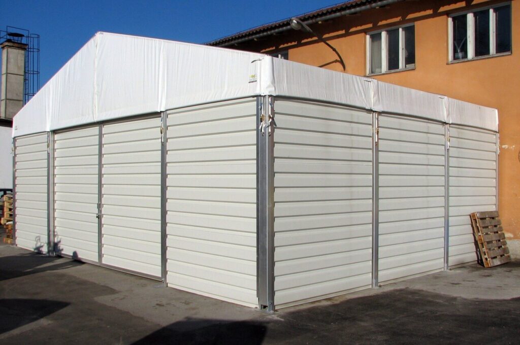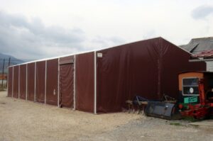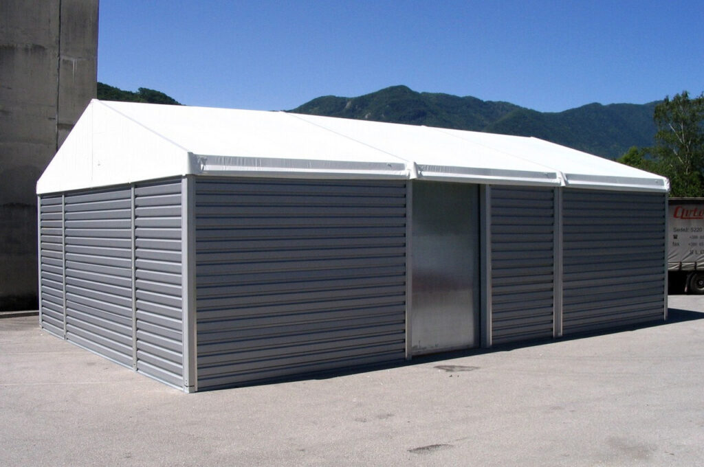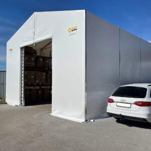 Skladišni šatori – industrijski šatori izrađeni su od robusne konstrukcije, aluminijskih profila i vruće pocinčanih čeličnih veznih elemenata. Ti elementi čvrsta su osnova konstrukcije, koja se može koristiti kao industrijski šator s različitim vrstama materijala za stranice, ovisno o namjeni i vrsti upotrebe. Omogućuje 3 različite vrste objekata.