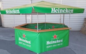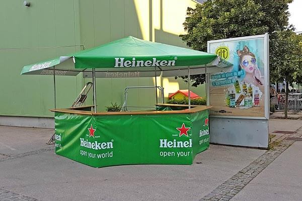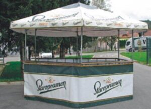 Ugostiteljski paviljon izvrsno je rješenje za promociju proizvoda, brendova, tvrtki, vina, piva i sokova. Pogodan je i za posluživanje pića i grickalica na raznim događanjima kao što su događanja, zabave, sajmovi i slično.